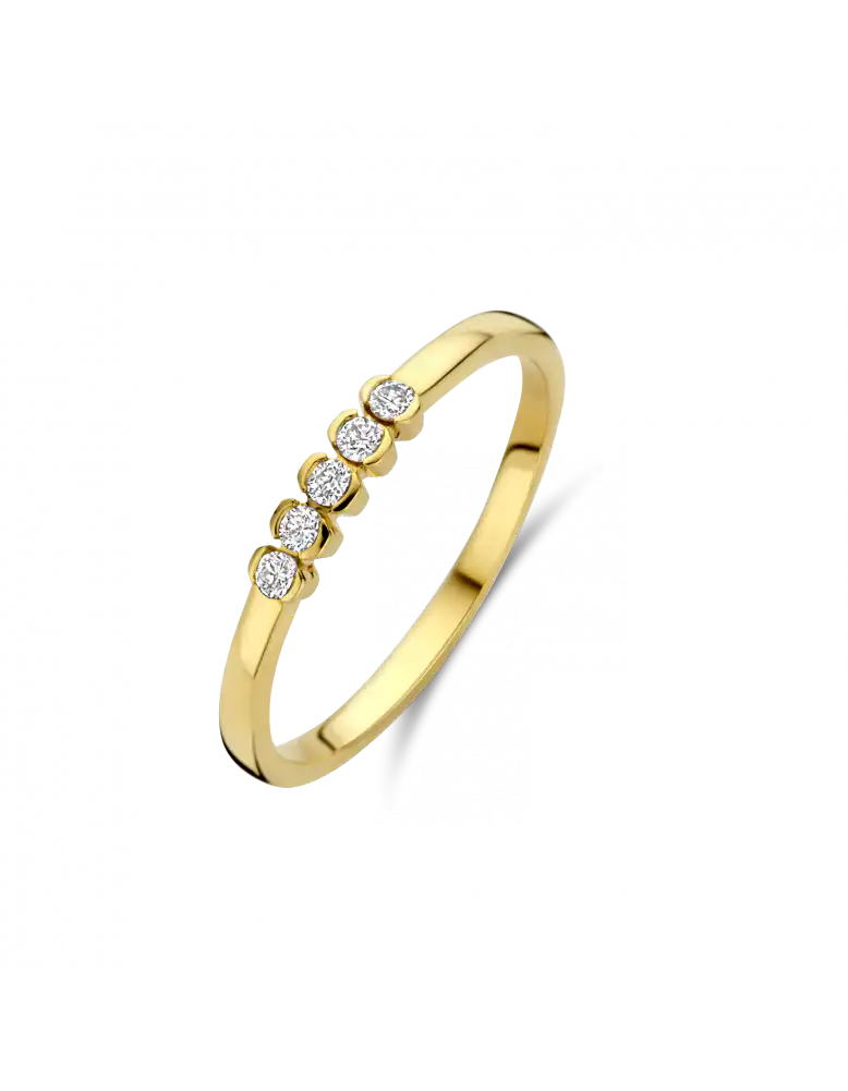 Geel gouden Premium Briljant ring CORTO bevat 5 briljant geslepen diamanten van elk 0.02 crt. in de kwaliteit H/Si. CORTO is een elegante ring voor een elegant persoon.