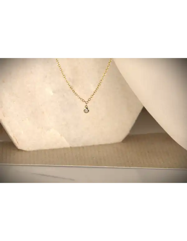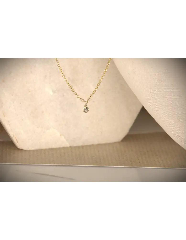 Geel gouden Briljant collier ELEGANTE 1 x 0.03 crt. H/Si. Schitterend door zijn eenvoud. Modern met een tijdloze uitstraling.