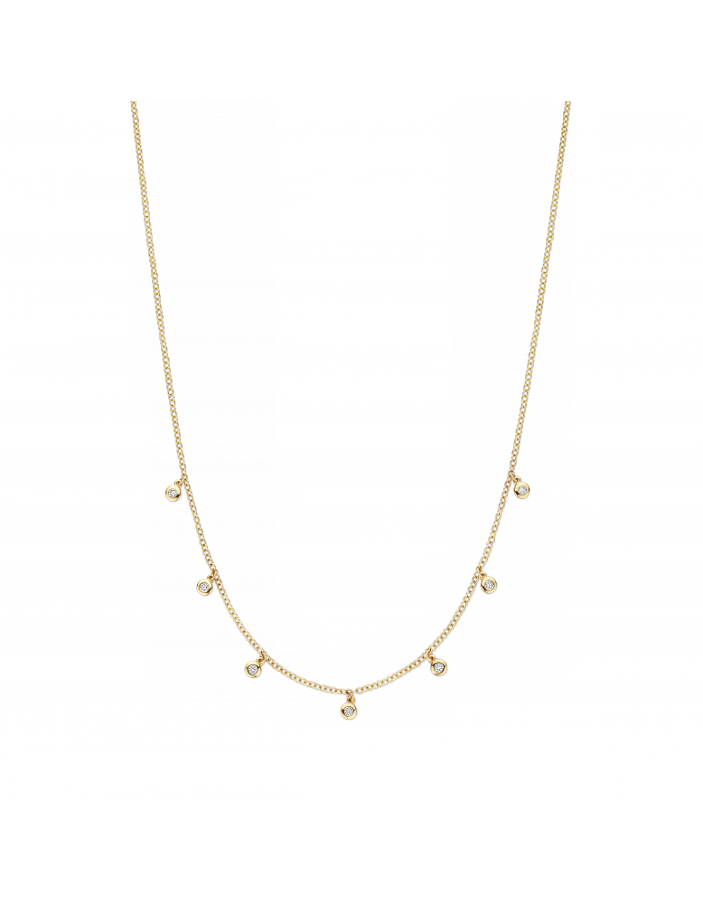 Geel gouden Briljant collier ELEGANTE 5 x 0.03 crt H/Si. Schitterend door zijn eenvoud. Modern met een tijdloze uitstraling.