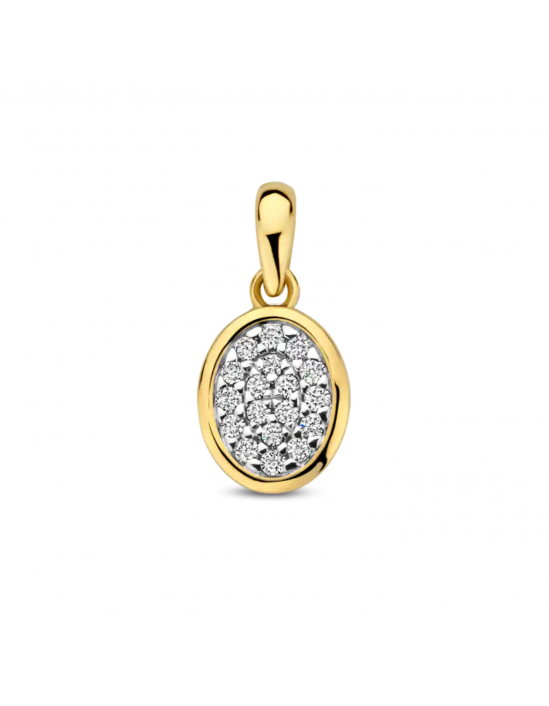 Bicolor Briljant hanger model JUNO is gezet met 0.08 crt. H/Si briljant geslepen diamanten. Prachtige oorsieraden die schitterend te combineren zijn met bijpassende oorsieraden en ring.