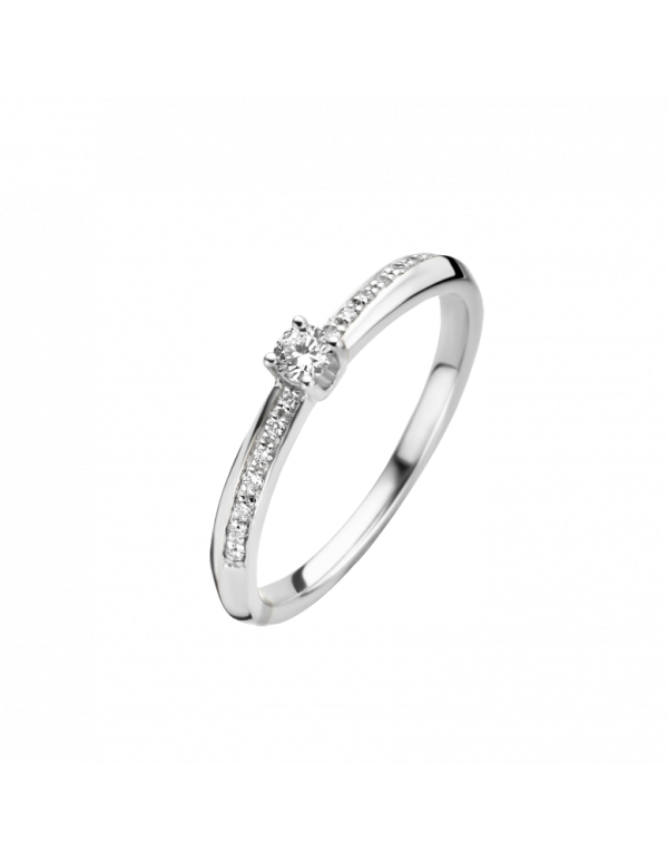 Het elegante model MARE is in geheel wit goud en in bicolor goud verkrijgbaar. Gezet met 15 briljant geslepen diamanten met een totaal briljant gewicht van 0.14 crt. in de kwaliteit H/Si
