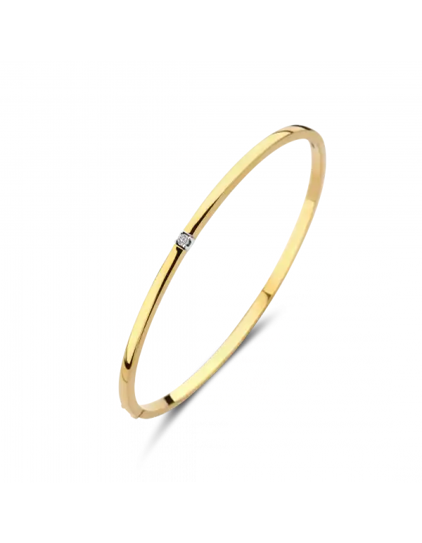 1 prachtige briljant in de massieve robuuste, maar nog steeds elegante MEMOIRE armband, draagbaar elegant en schitterend, door de lage zetting bijna onverwoestbaar. Je kunt je MEMOIRE armband completeren door er een set van te maken met ring, hanger, half-creool, en een creool.