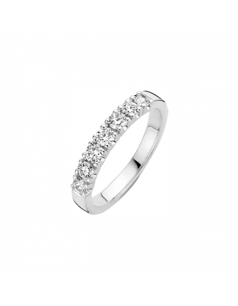 7 prachtige briljanten in de MEMOIRE ring, draagbaar elegant en schitterend, door de lage zetting bijna onverwoestbaar, heel mooi alleen te dragen of in combinatie met aanschuifringen. Je kunt je memoire ring completeren door er een set van te maken met hanger, half-creool, creool en zelfs een armband.