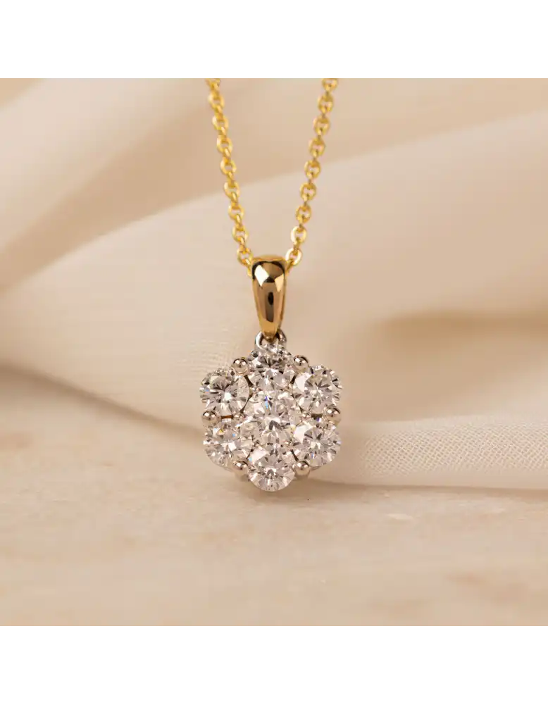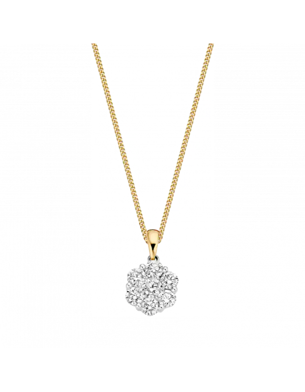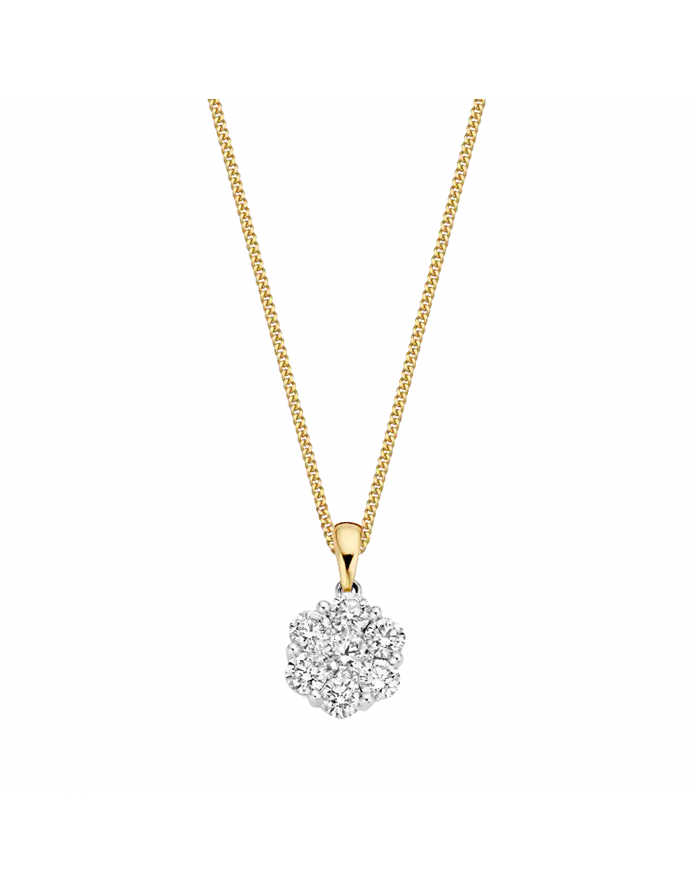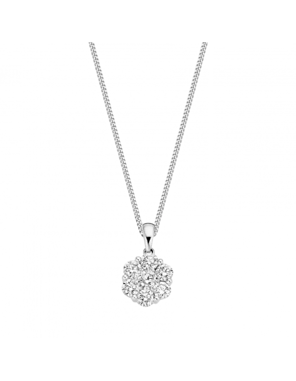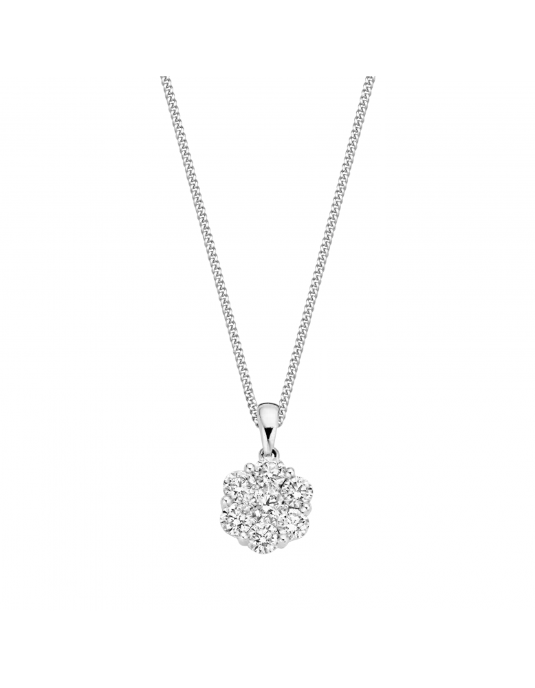 Sieraden uit de serie MONDO, hebben een elegante weelderige uitstraling. Door de in entourage gezette briljanten schitteren de sieraden prachtig. De briljanten zijn zo dicht tegen elkaar gezet dat het bijna een grote briljant lijkt MONDO bestaat uit ringen, hangers en oorsieraden. Deze hanger wordt zonder collier geleverd.