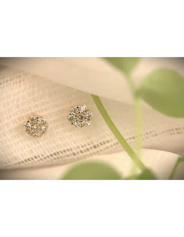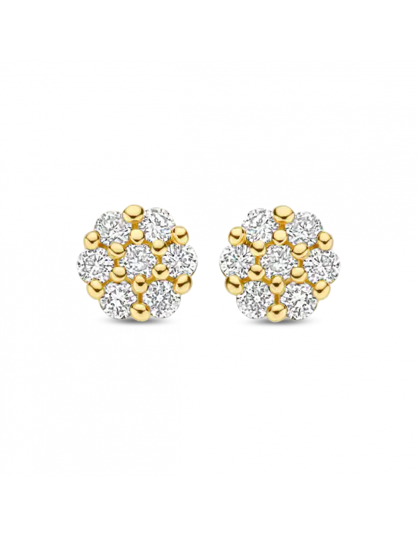 Geel gouden Briljant oorsieraden model PALMA bezet met 0.15 crt. H/Si, briljant geslepen diamanten. Daar wordt een mens toch vrolijk van.