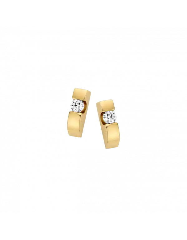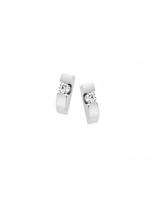 Strak vormgegeven oorsieraden met briljant geslepen diamant waarbij de briljanten een eenheid met de oorsieraden vormen. Uitstekend te combineren met bijpassende ring en oorsieraden