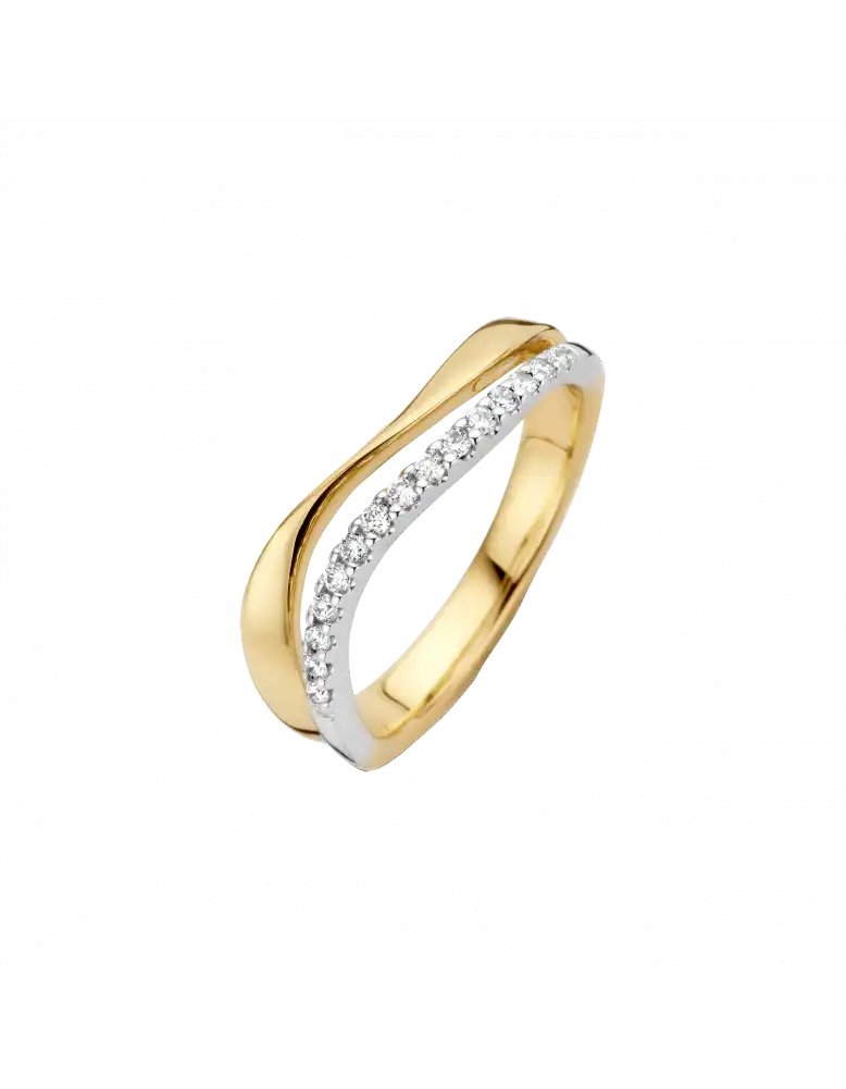 Door het wit en geel goud te combineren wordt briljant ring TARO erg stijlvol en gemakkelijk te combineren met andere sieraden. TARO heeft 0.16 crt. briljant geslepen diamant, kwaliteit H/Si. TARO is elegant en past bij iedere gelegenheid en om elke vinger.