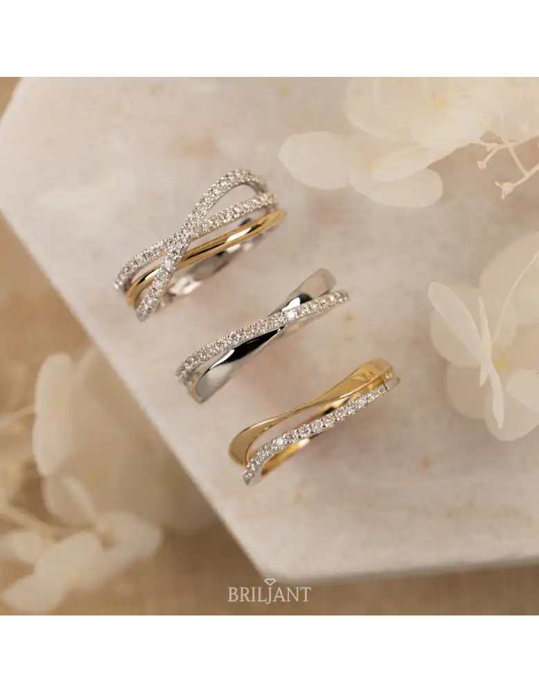 Bicolor Briljant ring TOCE met een prachtig lijnenspel heeft 0.33 crt H/Si briljant geslepen diamant. TOCE is er sierlijk, heeft een rijke uitstraling en is een genot om te dragen.