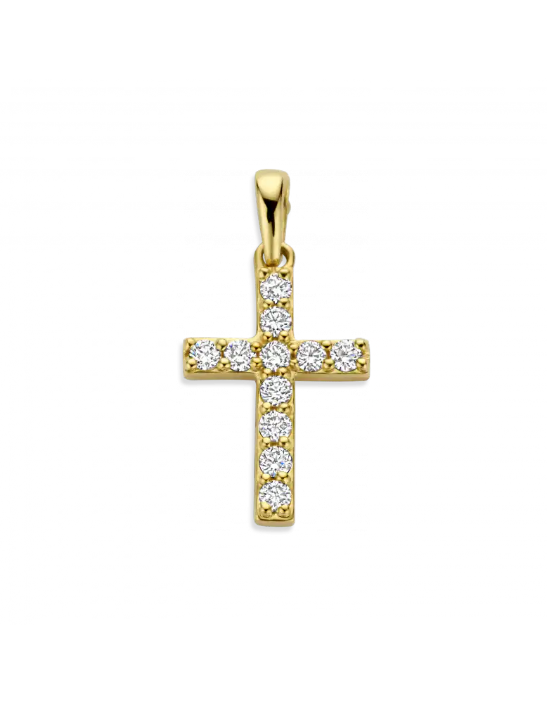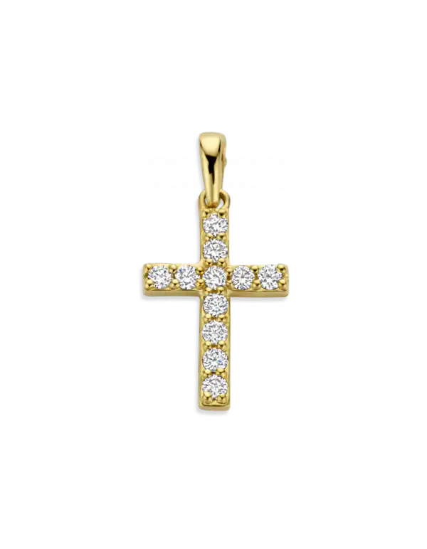 Geel gouden kruis TODI heeft 0.10 crt. H/Si briljant geslepen diamant.