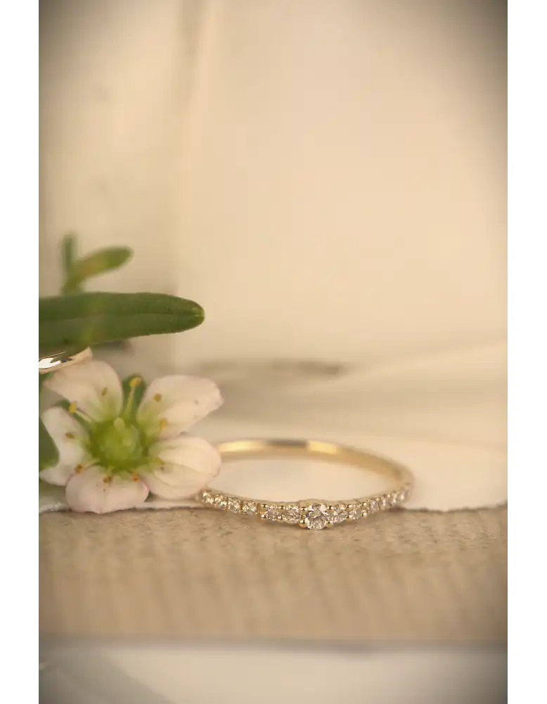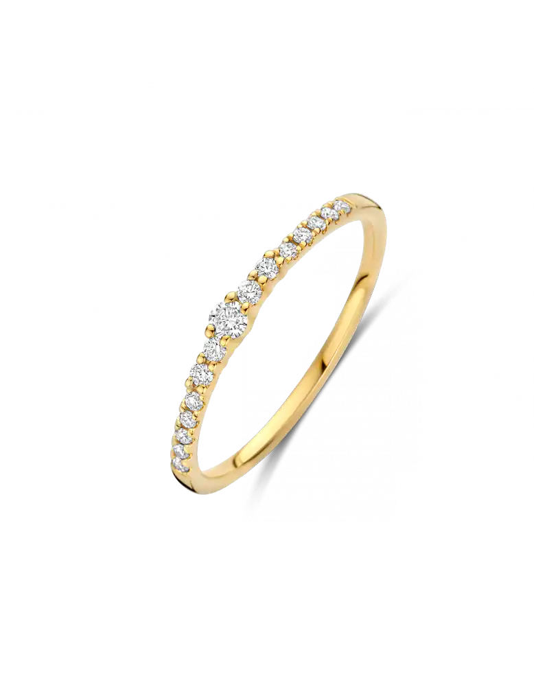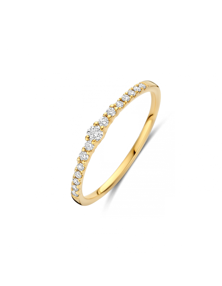 Ring VALENCIA is gemaakt van 14 karaats geel goud en gezet met schitterende briljant geslepen diamanten met een gewicht van 0.15 crt. H/Si. Schitterend elegant klassiek en tijdloos.