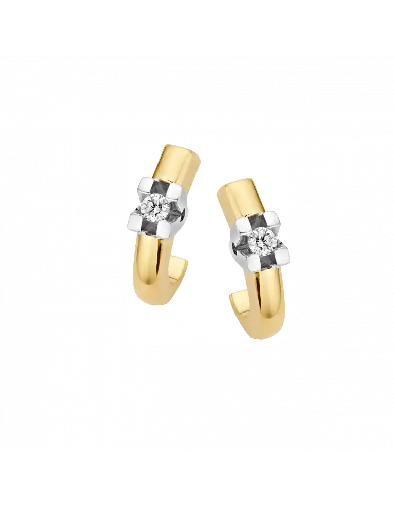 Comfortabele robuuste stijlvolle oorsieraden, model VOLONTA, met de schitterende briljant geslepen diamanten in stevige witgouden zetting gevat, voor jaren lang draagplezier. Prachtig te combineren met bijpassende ring en cliphanger